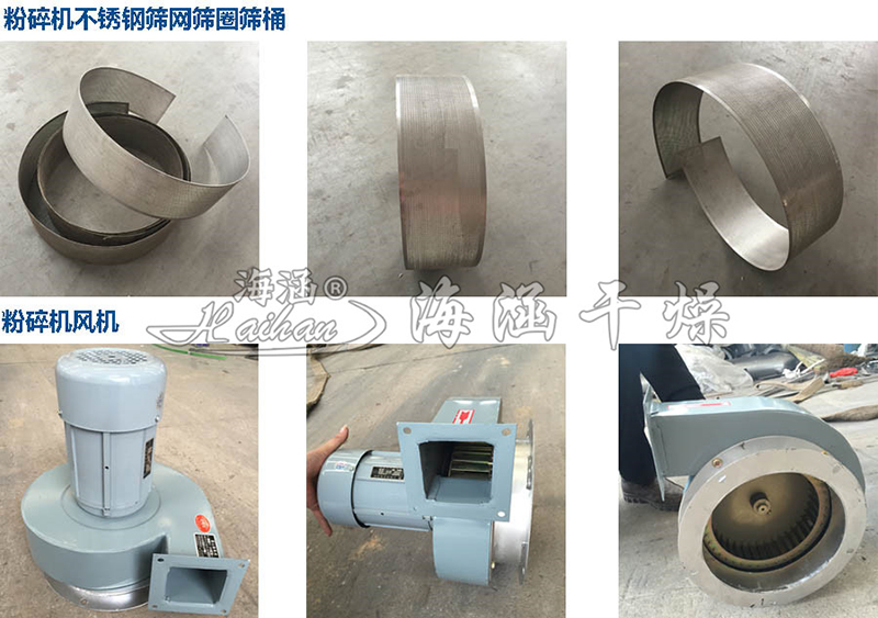 粉碎机配件:粉碎机不锈钢筛网筛圈筛桶、粉碎机风机。
